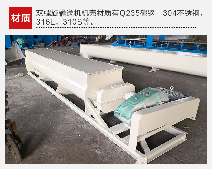 雙螺旋輸送機機殼材質有Q235碳鋼,304不銹鋼,316L,310S等等,選擇不同材質的輸送機,其價格就會相應有所變化。在型號等條件相同情況下,碳鋼和不銹鋼螺旋輸送機的差價在1500-2000元之間。