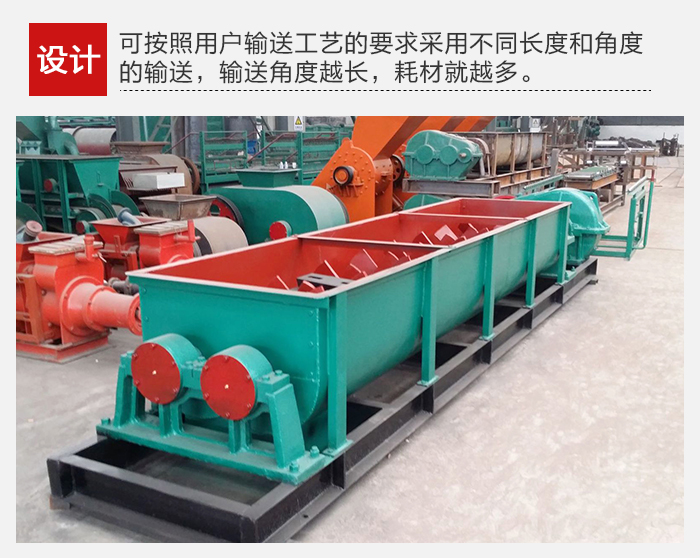 雙螺旋輸送機可以按照用戶輸送工藝的要求采用不同長度和角度的輸送,輸送角度越長,耗材就越多,選擇的電機功率及板材厚度也是不同的。而且設備可以按照用戶輸送物料的特性設計為有軸和無軸兩種,這兩者在耗材上和加工上是不同的,所以價格也會有差異。