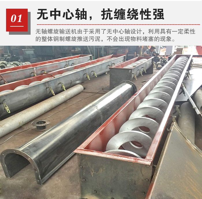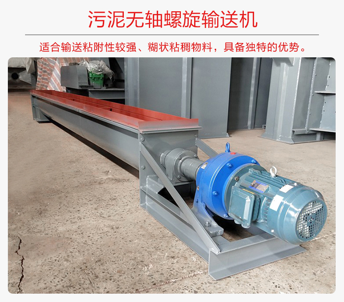 污泥中含有大量的雜質(zhì),使用傳統(tǒng)輸送機對其進行輸送很容易出現(xiàn)堵料現(xiàn)象,嚴重影響輸送效率,無軸螺旋輸送機由于采用了無中心軸設(shè)計,利用具有一定柔性的整體鋼制螺旋推送污泥,其抗纏繞性強,不會出現(xiàn)物料堵塞的現(xiàn)象。
