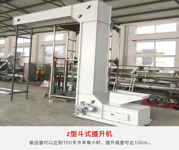 z型斗式提升機外形類似于“z”型,也叫做轉斗式提升機,可以單點或多點加料,通過卸料裝置完成單點或多點卸料,輸送量可以達到100㎡/h,提升高度可達100m。