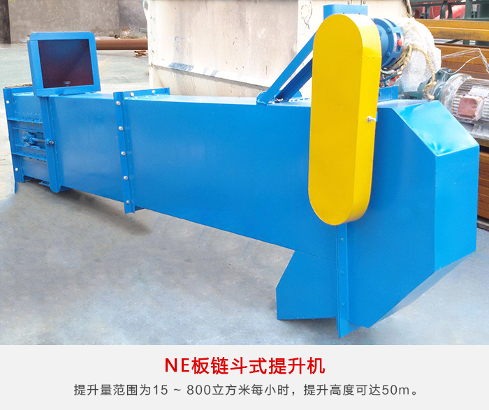 NE板鏈斗式提升機為板鏈式、重力誘導卸料的提升設備,該系列提升機具有NE15 ~ NE800多種規格。提升量范圍為15 ~ 800m³ /h,提升高度可達50m。
