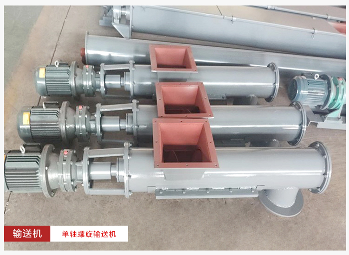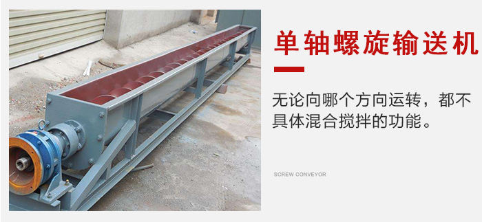 單軸螺旋輸送機(jī)無論向哪個(gè)方向運(yùn)轉(zhuǎn),都不具體混合攪拌的功能,當(dāng)物料放入進(jìn)料口時(shí),會(huì)自動(dòng)將物料轉(zhuǎn)動(dòng)到中間,混合到一起。