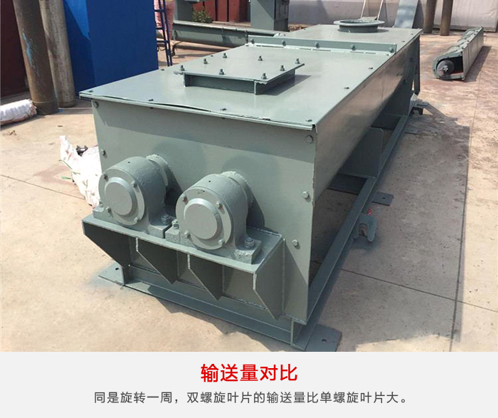 雙螺旋和單螺旋在同樣轉(zhuǎn)速下,因?yàn)殡p螺旋葉片的螺旋角比單螺旋葉片高,因此雙螺旋葉片的輸送流量比單螺旋葉片大,同是旋轉(zhuǎn)一周,雙螺旋葉片的輸送量比單螺旋葉片大。