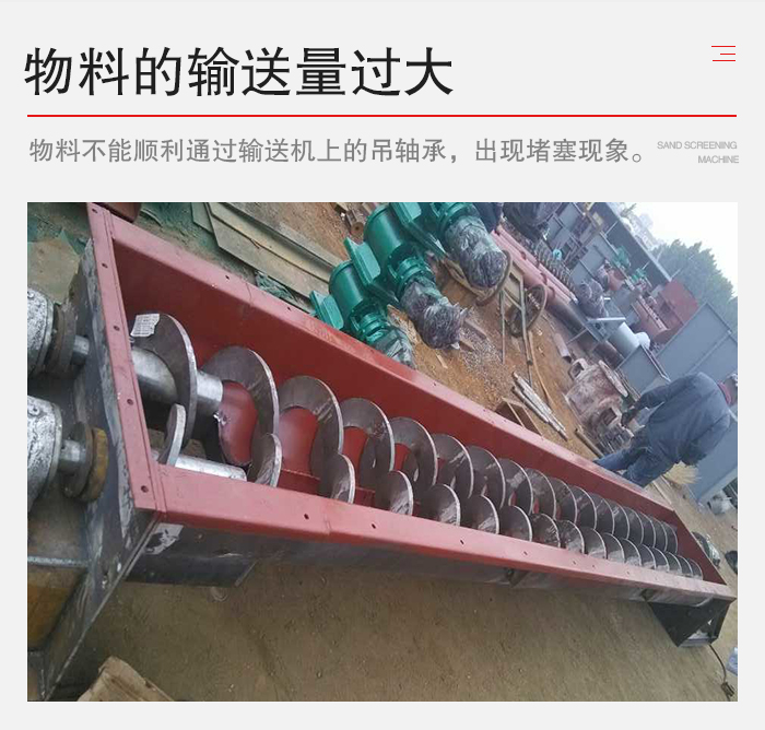 2、物料中雜物使螺旋吊軸承堵塞,處理方法是停機清除機內雜物。