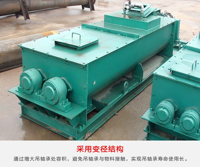 雙軸螺旋輸送機(jī)采用變徑結(jié)構(gòu),通過(guò)增大吊軸承處容積,避免吊軸承與物料接觸,實(shí)現(xiàn)吊軸承壽命可達(dá)到兩年以上。