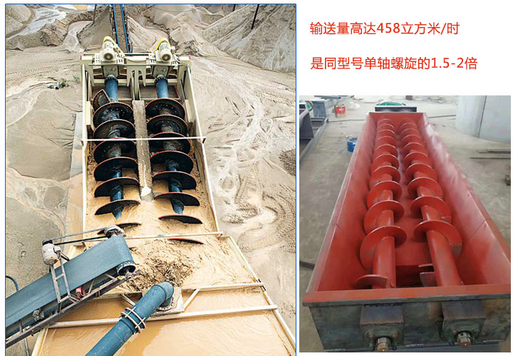 雙螺旋輸送機輸送量高達458立方米/時,由于是兩根螺旋同時旋轉可增大其輸送效率,其輸送量是同型號單軸螺旋輸送機的1.5-2倍;此外,還可多點裝料或卸料,可大大加大輸送產量,一小時可達100噸。