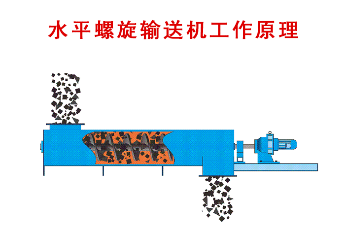 當(dāng)物料加入固定料槽時(shí),由于物料自重和機(jī)槽之間的摩擦,會(huì)堆積在機(jī)槽上,物料在旋轉(zhuǎn)的螺旋葉片的推動(dòng)下向前運(yùn)動(dòng),從而達(dá)到水平方向上的輸送的。