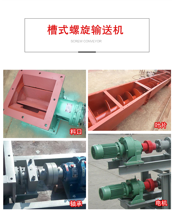 3、槽式螺旋輸送機整機體積小、轉(zhuǎn)速高、確保快速均勻輸送。
