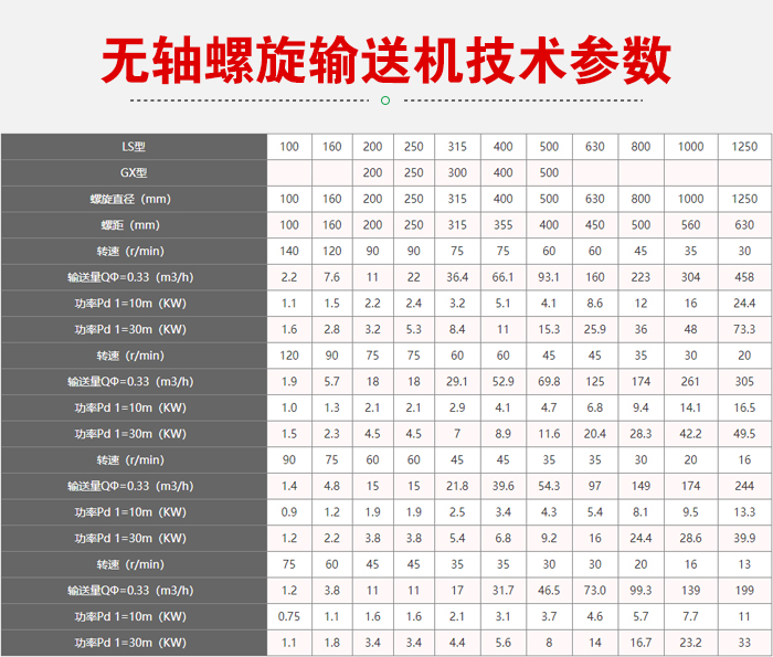 2、相對于有軸螺旋輸送機,其輸送量是相同直徑有軸螺旋輸送機的1.5倍;