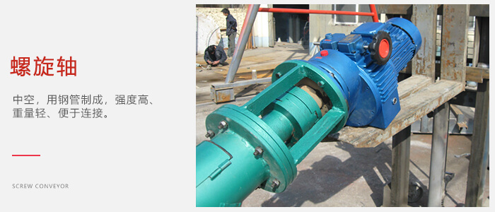 螺旋軸:中空,用鋼管制成,強度高、重量輕、便于連接。在軸與軸的連接處和安裝軸承處使用一小段實心軸。在連接處將實心軸伸入空心軸內(nèi)用高強度的螺栓按相互垂直方向?qū)Υ┛招妮S與實心軸來固定連接螺旋軸。