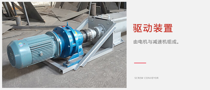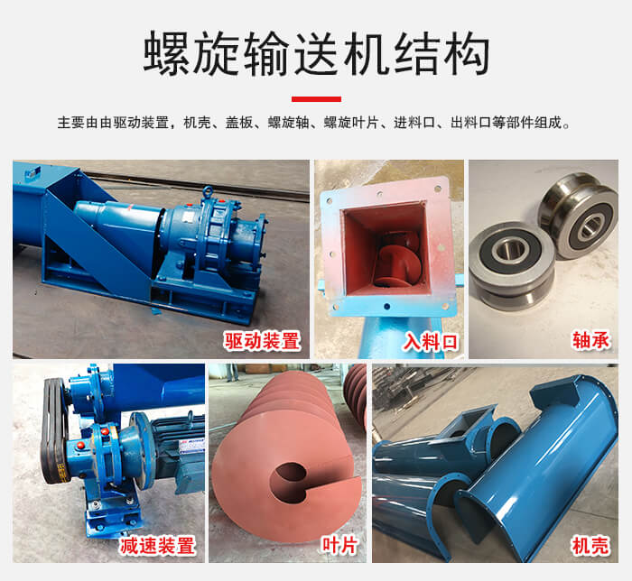 主要由由驅(qū)動裝置,機殼、蓋板、螺旋軸、螺旋葉片、進(jìn)料口、出料口等部件組成。