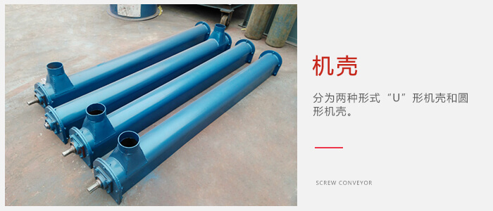 機殼:分為兩種形式“U”形機殼和圓形機殼,圓形機殼主要是用作密封設(shè)備進(jìn)料,圓形機殼的絞龍又叫密封絞龍。